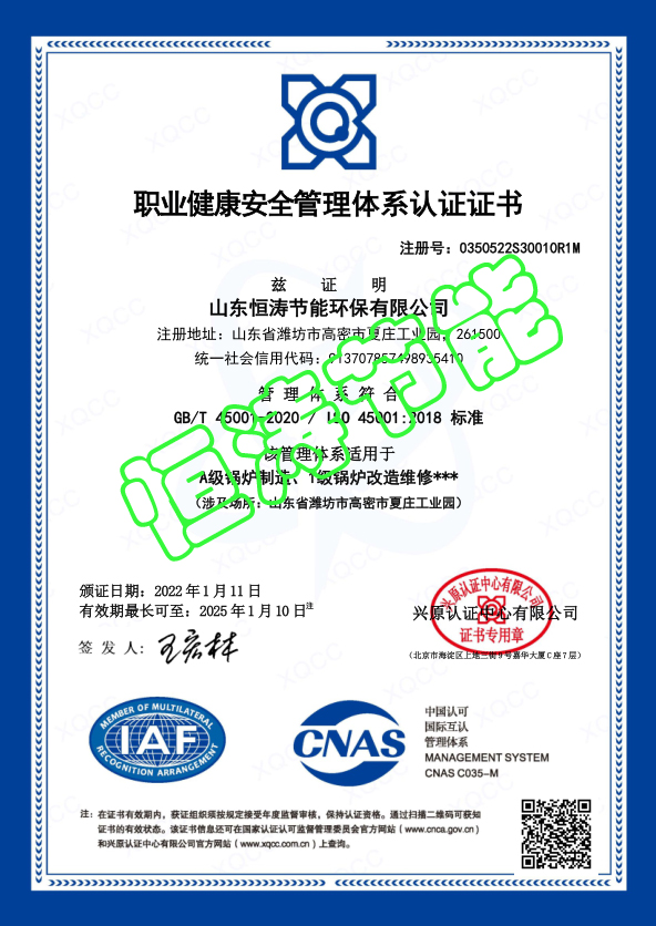 職業健康安全管理體系認證證書