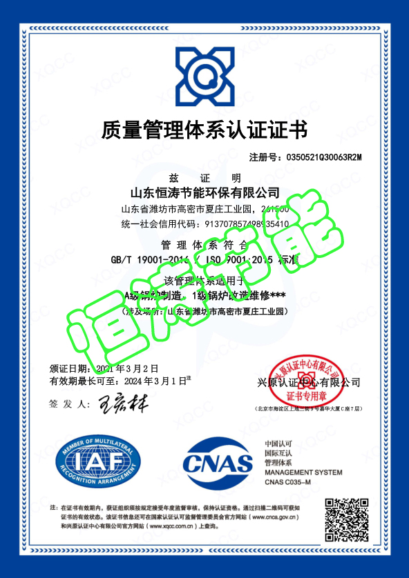 質量管理體系認證證書
